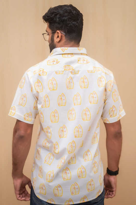 White Surfboard Block Printed Shirt