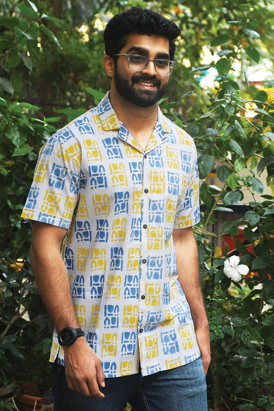Yellow and Blue Block Printed Shirt