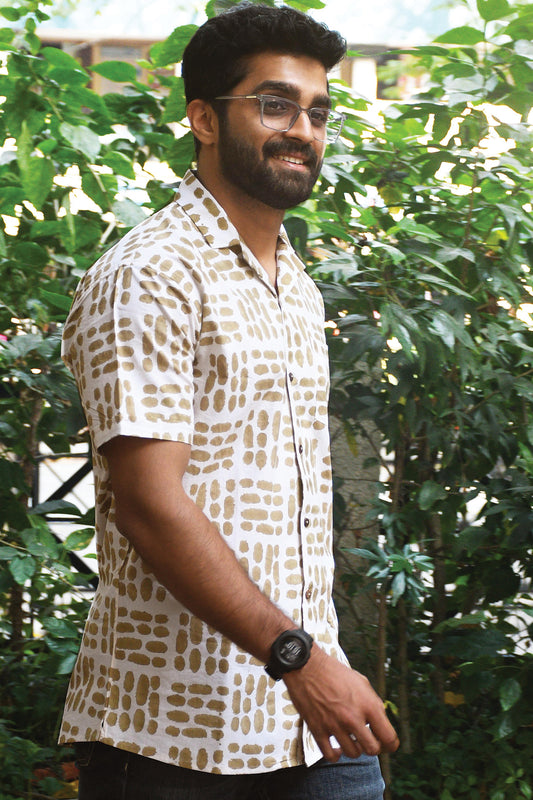 Sold outBeige Block Printed Shirt