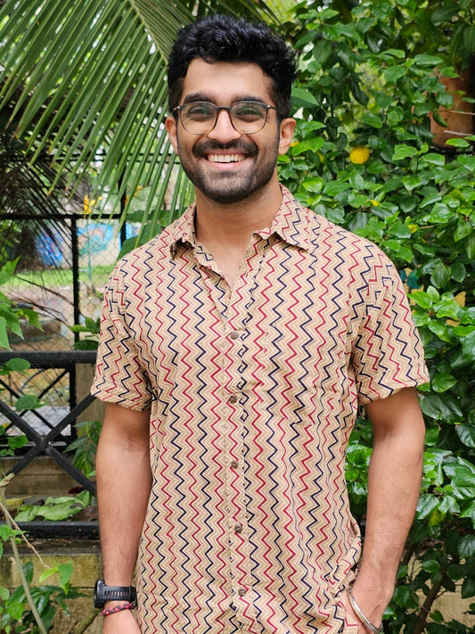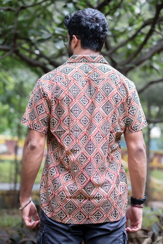 Geometric Brown Block Printed Shirt