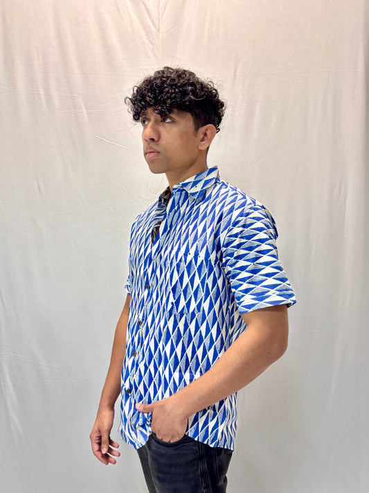 10% OFFBlue Zig Zag Block Printed Shirt