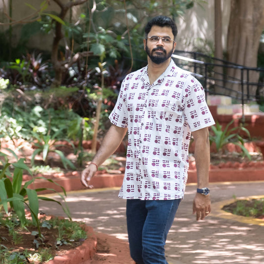 White and Maroon Block Printed Shirt